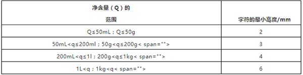 净含量字符的zui小高度应符合表3的规定。